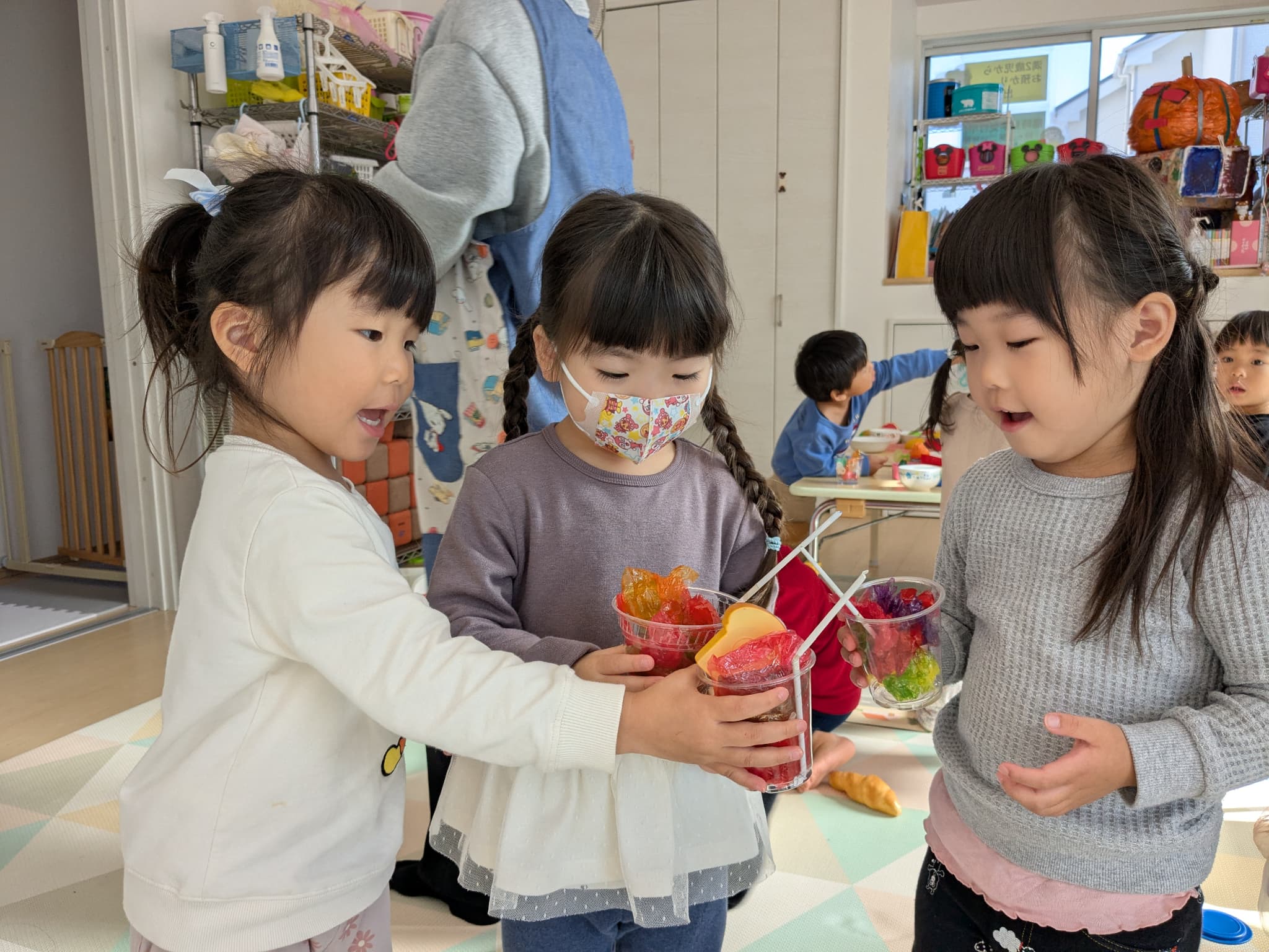園にいる時間もお一人お一人異なるので、ご家庭での様子をみて、 保護者の方にお決め頂き、 園も協力していくというスタンスをとって参ります。